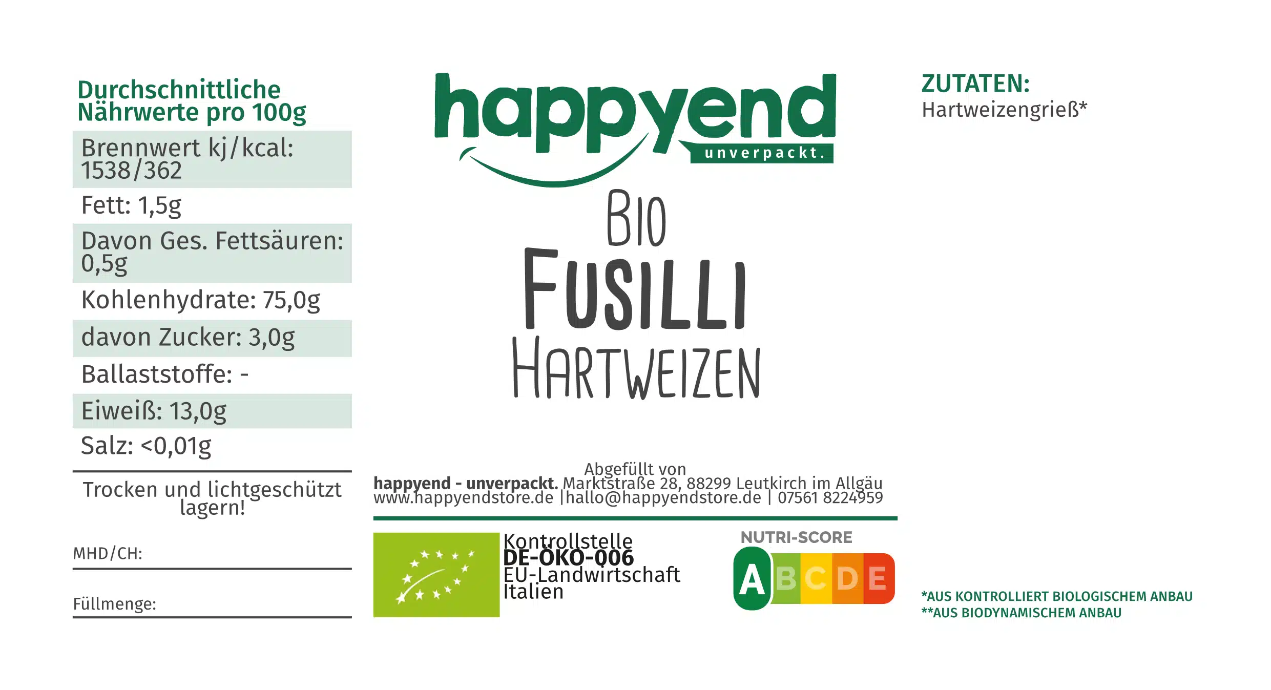 Trocken, kühl & dunkel lagern |