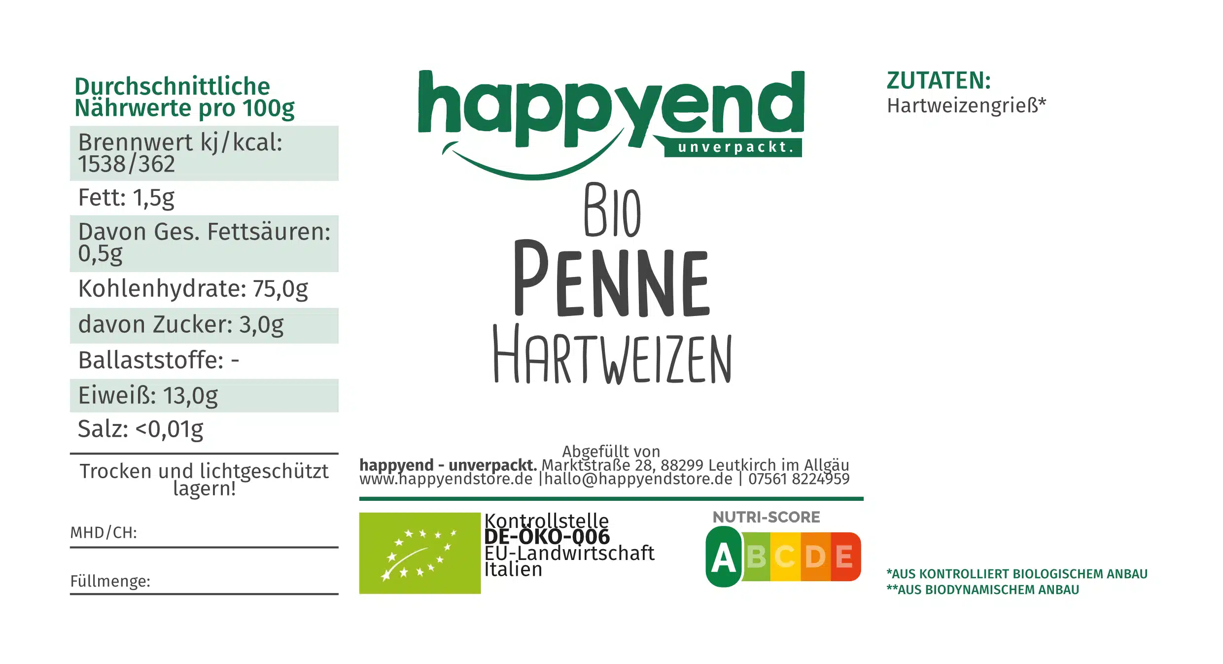 Trocken, kühl & dunkel lagern |
